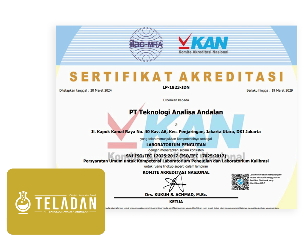 TELADAN akan memberikan Hasil Uji berupa sertifikat dengan akreditasi KAN yang disertai dengan penjelasan metode yang digunakan.